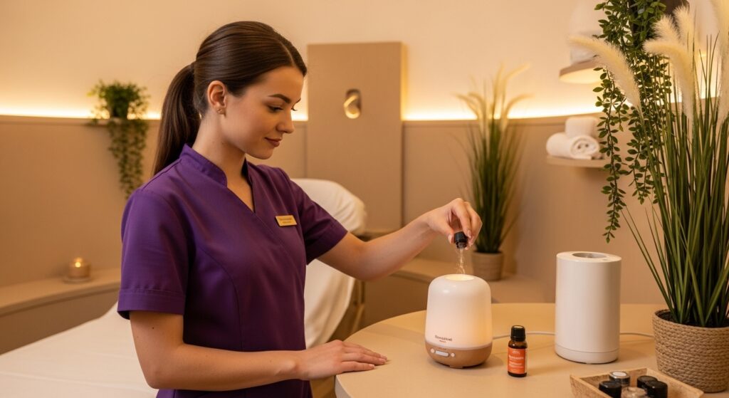 ✅ Difusor en la recepción o al inicio de la sesión