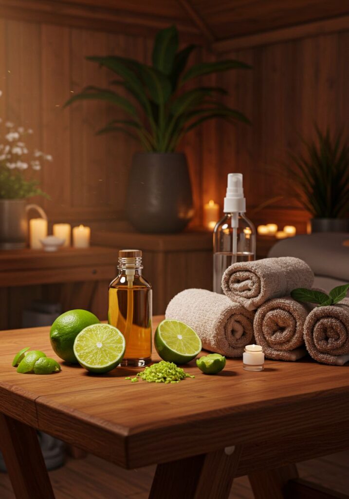 Aromaterapia de lima + compresas tibias + bruma revitalizante