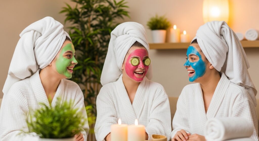 Con mascarillas revitalizantes, aromaterapia para autoestima y afirmaciones frente al espejo.