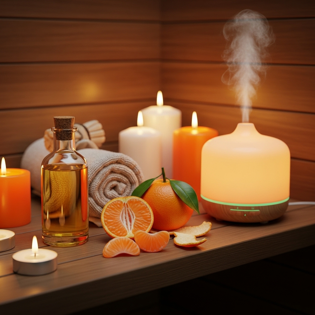- Aceite neutro + esencia segura (mandarina, lavanda)
