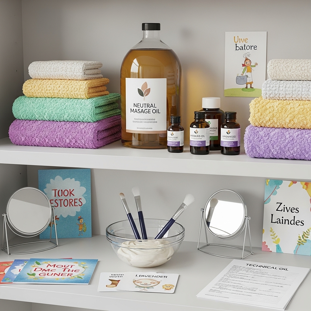 - Masajito relajante: En espalda, brazos o pies, con aceites neutros y aromas frutales